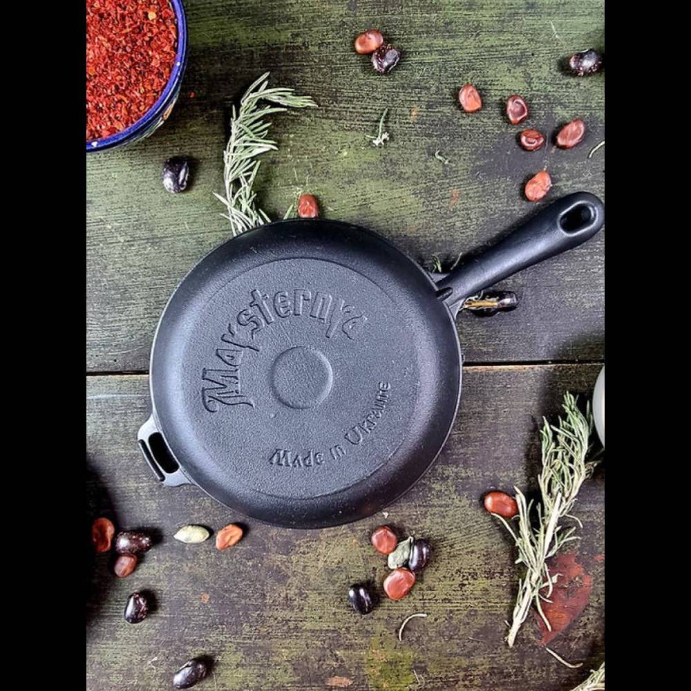 Сковорода виробництва України ТМ "Maysternya" виготовлена з литого чавуну.